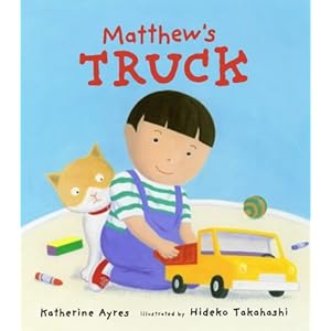 Matthew imagines all the places his yellow dump truck could go in Matthew's Truck by Katherine Ayres.