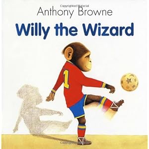 Willy the Wizard by Anthony Browne combines both soccer and magic into a tale of a chimp who wants nothing more than to play soccer, but can't because he doesn't have proper shoes. A man appears in front of the old pie factory and leaves behind his soccer "boots" for Willy. Willy thinks because they are magical, he's playing well. But on the day of the big match when Willy can't find his boots, he discovers he is the reason he plays so well.