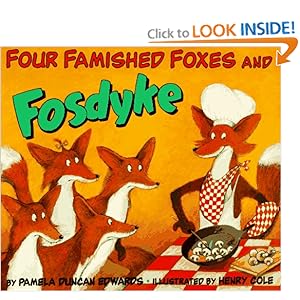 Four Famished Foxes and Fosdyke by Pamela Edwards is the story of one tired mother who leaves her five fox children to find food for themselves for five days while she's in Florida. Frank, Floyd, Freddy, and Flo decide to hunt for food (but fail) while Fosdyke stays home and cooks delicious food for the family. Did I mention there are over 60 words that begin with the letter F in this book? Fun!