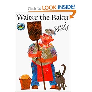 Walter the Baker by Eric Carle is the story of a baker who is known for his delicious bread, until one day when his cat spills all the milk and he's forced to bake with water, instead. The Duke orders Walter to make a bread that the sun can shine through three times, and Walter invents the pretzel.